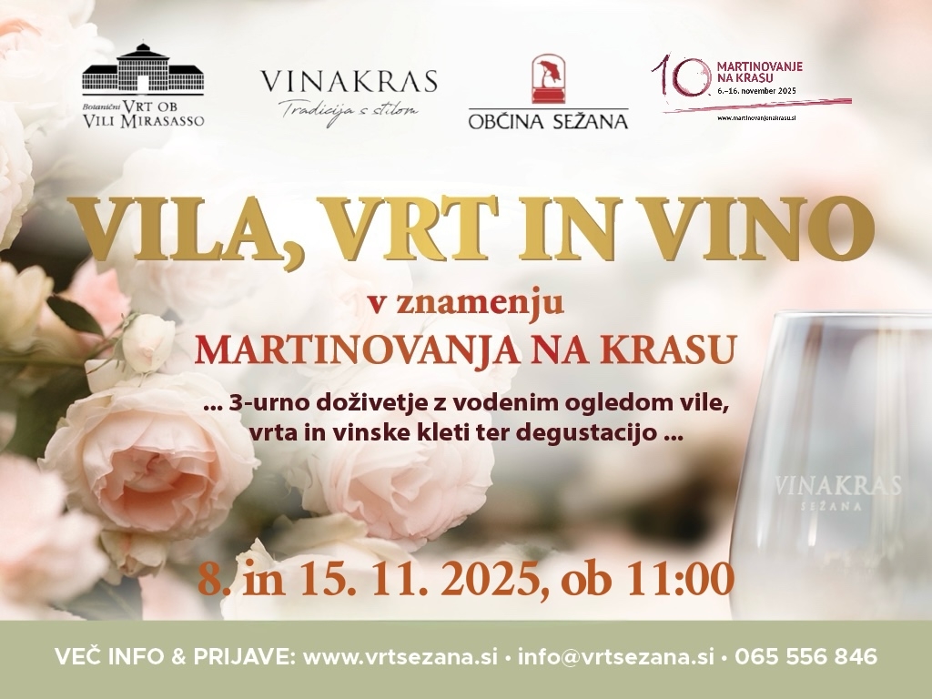 V soboto, 8.11.2025 & soboto, 15.11.2025, ob 11. uri z zbirnim mestom pred vhodom v Vilo Mirasasso (današnjo stavbo Občine Sežana)