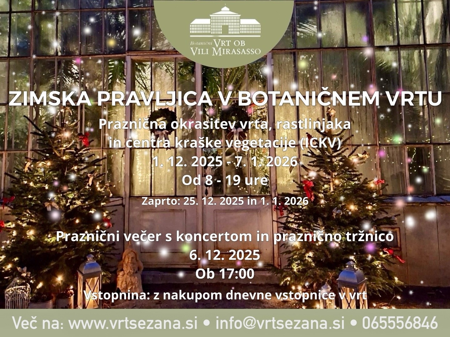 na ogled Botaničnega vrta v soju prazničnih luči, rastlinjaka odetega v božično-novoletni dekor in pravo kraško zimsko pravljično deželo, v notranjih prostorih ICKV.